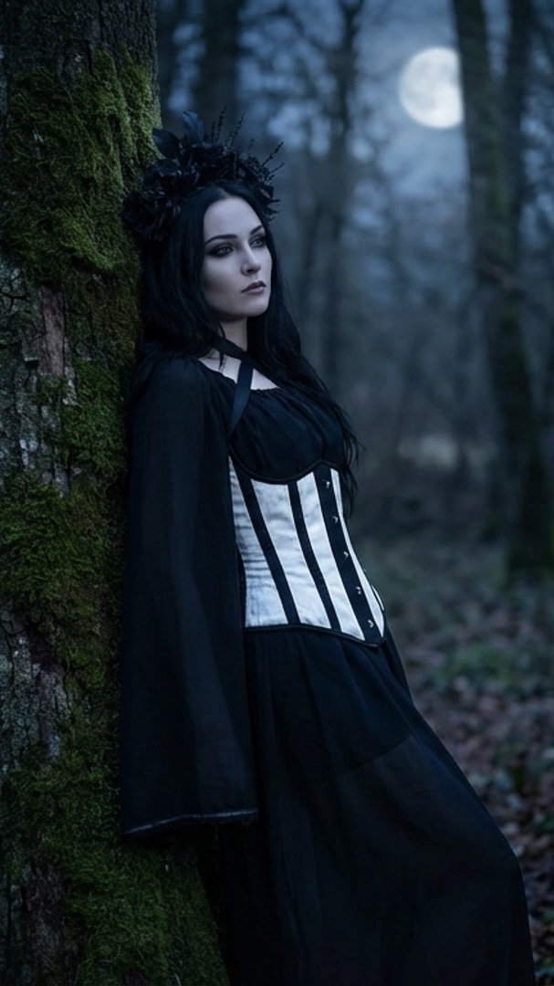 Ведьма Готика Вампир черно белый корсет